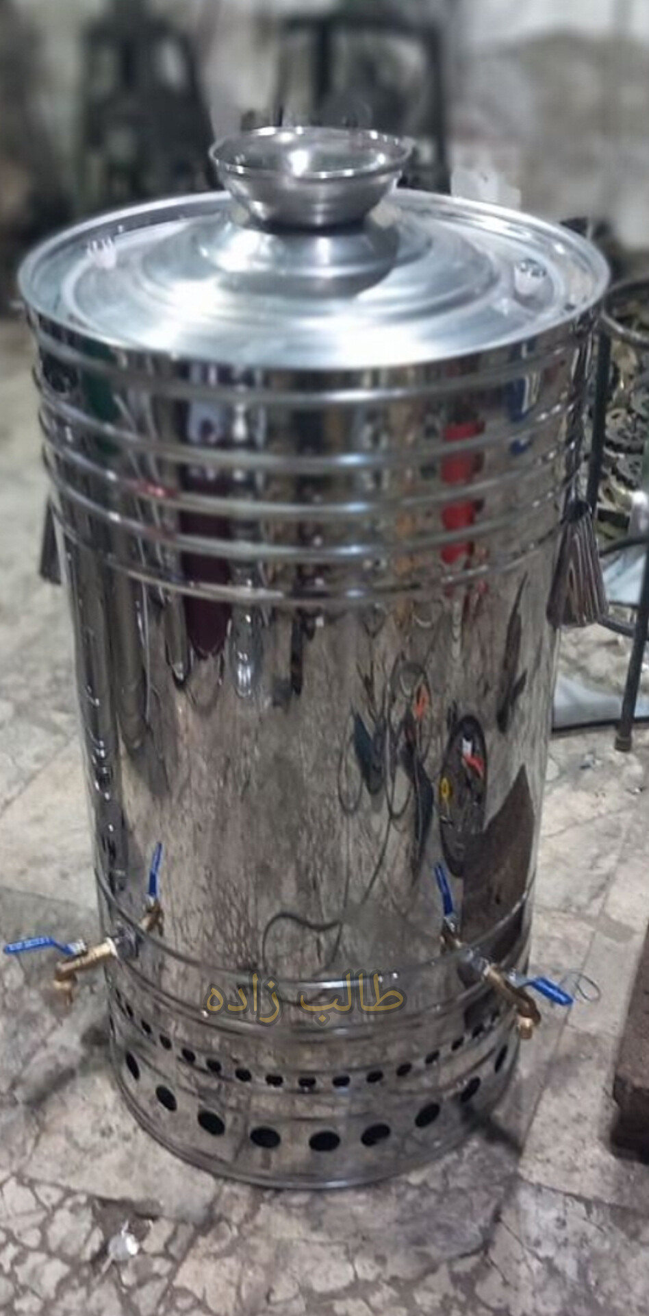 سماور مجلسی سماور هییتی هیئتی سماور استیل بشکه ای 100 لیتری صدرا استیل کار (پس کرایه)