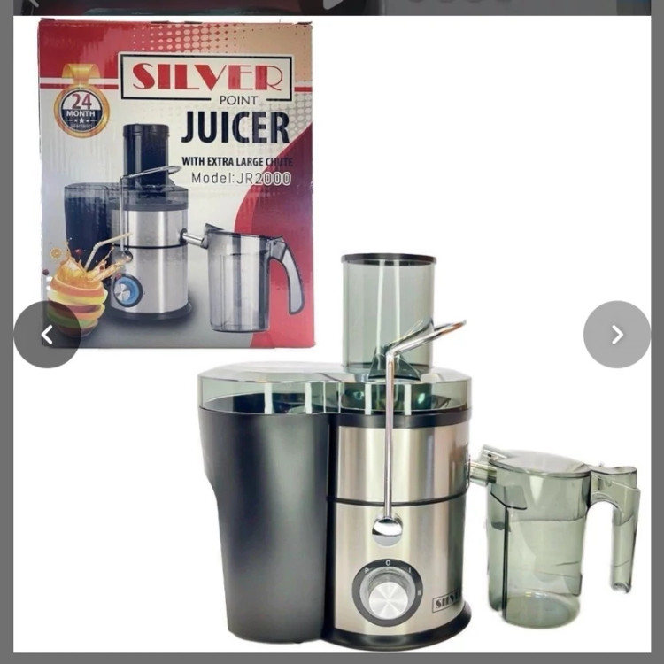 آبمیوه گیری استیل مارک silverpoint دارای دو سرعت تیغه استیل ضد زنگ ایمنی در برابر حرارت دارای قفل ایمنی توان ورودی 800 وات ظرفیت مخزن تفاله 3 لیتر ظرفیت پارچ ابمیوه یک لیتر امکان جداسازی و شستشوی راحت کم مصرف و پرتوان دارای گارانتی 24ماهه زیر قیمت بازار