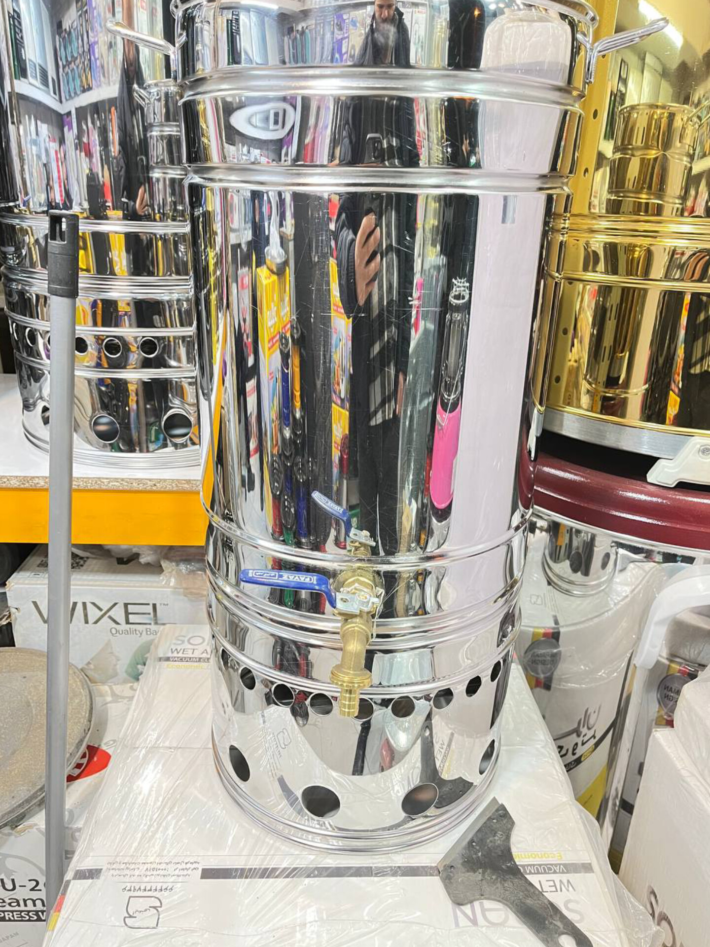با سلام . از تولید به مصرف . . عرضه انواع سماورهای مجلسی هیئتی گازی . از لیترهای 10 تا 200 لیتری . . دارای یک سال گارانتی . ورق کف 7 دهم بدنه 5 دهم . . دو مدل گاز شهری و کپسولی . جنس خوب . . قابلیت استفاده برای خیمه ها -موکب ها -هییت ها- روضه- اداره جات -کارخانه ها - پاساژ - هایپر مارکت و..... . سماورهای ما بدون نقطه جوش سماورهایی که نقطه جوش دارند بعد از مدتی بوی تلخی و زنگ زدگی میشود.. . ارسال هر روزه به سراسر کشور