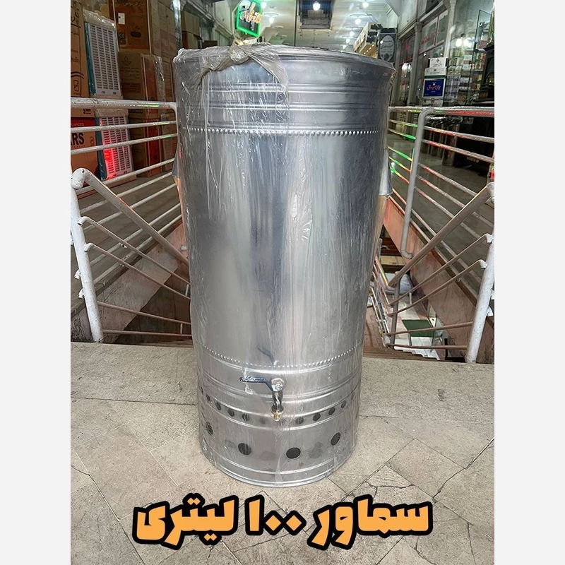 سماور مجلسی سماور هییتی هیئتی سماور استیل بشکه ای 100 لیتری صدرا استیل کار (پس کرایه)