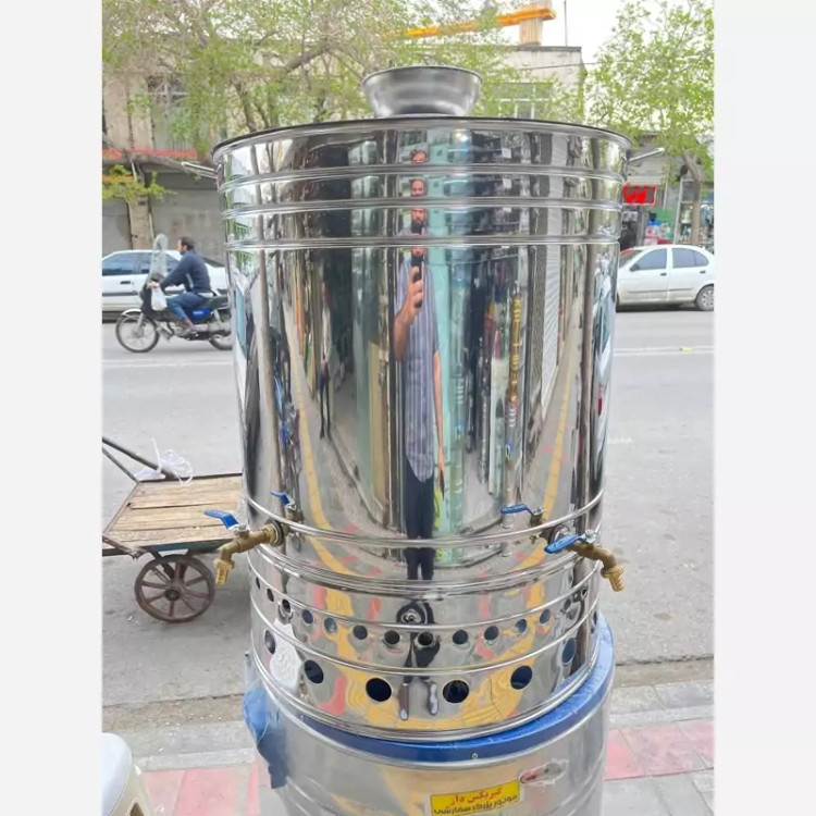 با سلام . از تولید به مصرف . . عرضه انواع سماورهای مجلسی هیئتی گازی . از لیترهای 10 تا 200 لیتری . . دارای یک سال گارانتی . ورق کف 7 دهم بدنه 5 دهم . . دو مدل گاز شهری و کپسولی . جنس خوب . . قابلیت استفاده برای خیمه ها -موکب ها -هییت ها- روضه- اداره جات -کارخانه ها - پاساژ - هایپر مارکت و..... . سماورهای ما بدون نقطه جوش سماورهایی که نقطه جوش دارند بعد از مدتی بوی تلخی و زنگ زدگی میشود.. . ارسال هر روزه به سراسر کشور